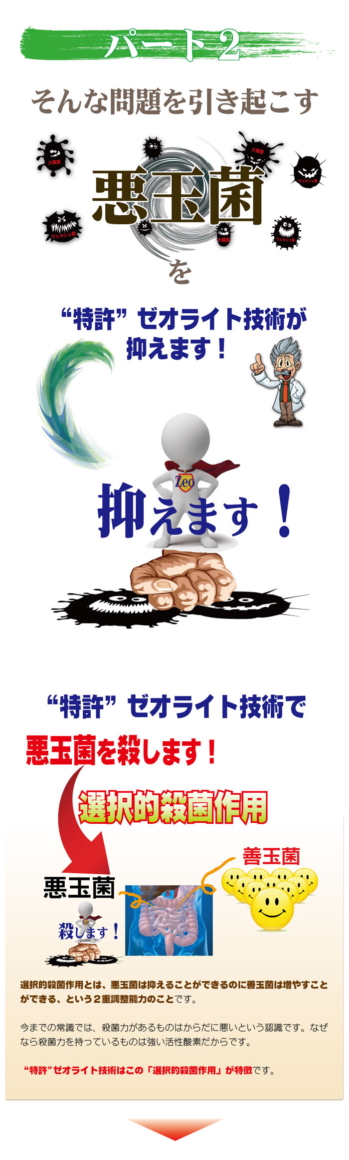 <2>●選択的殺菌作用効果があることがTV放映で証明された。